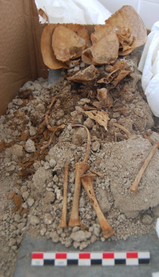 A Byzantian baby skeleton found in an archaeological site at Sille, Turkey. Before conservation.