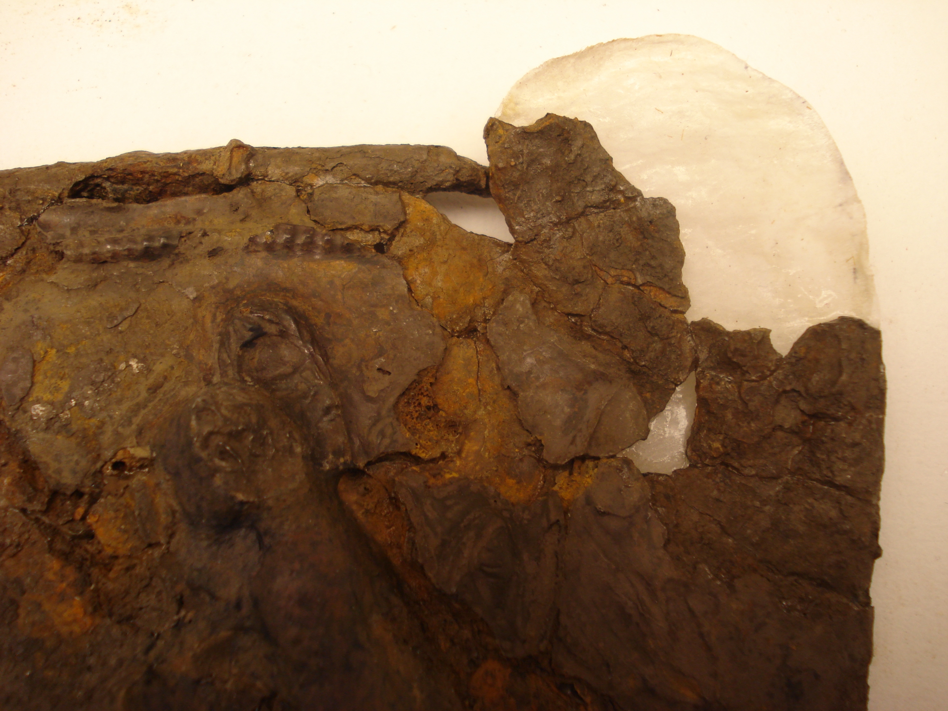 Hallaton Roman Helmet. Cheek piece during soil removal (copyright of British Museum).