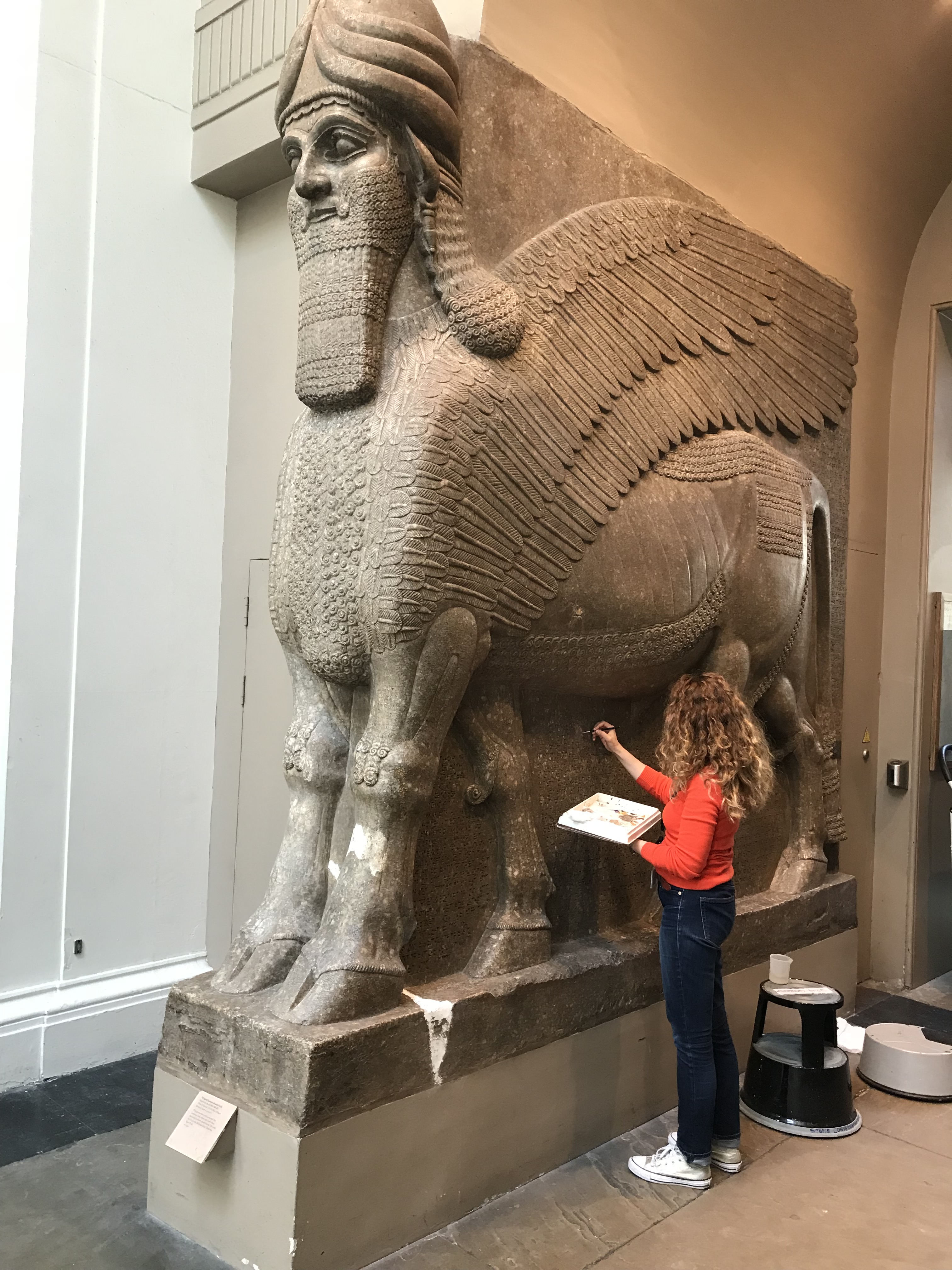 Cleaning and retouching of the Winged Bull at the British Museum